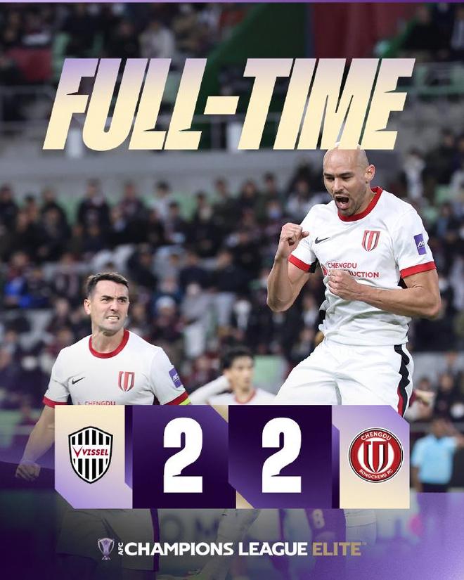 2025年12月09日 4轮亚冠不胜!蓉城2-2战平神户 费利佩双响李扬86分钟送点